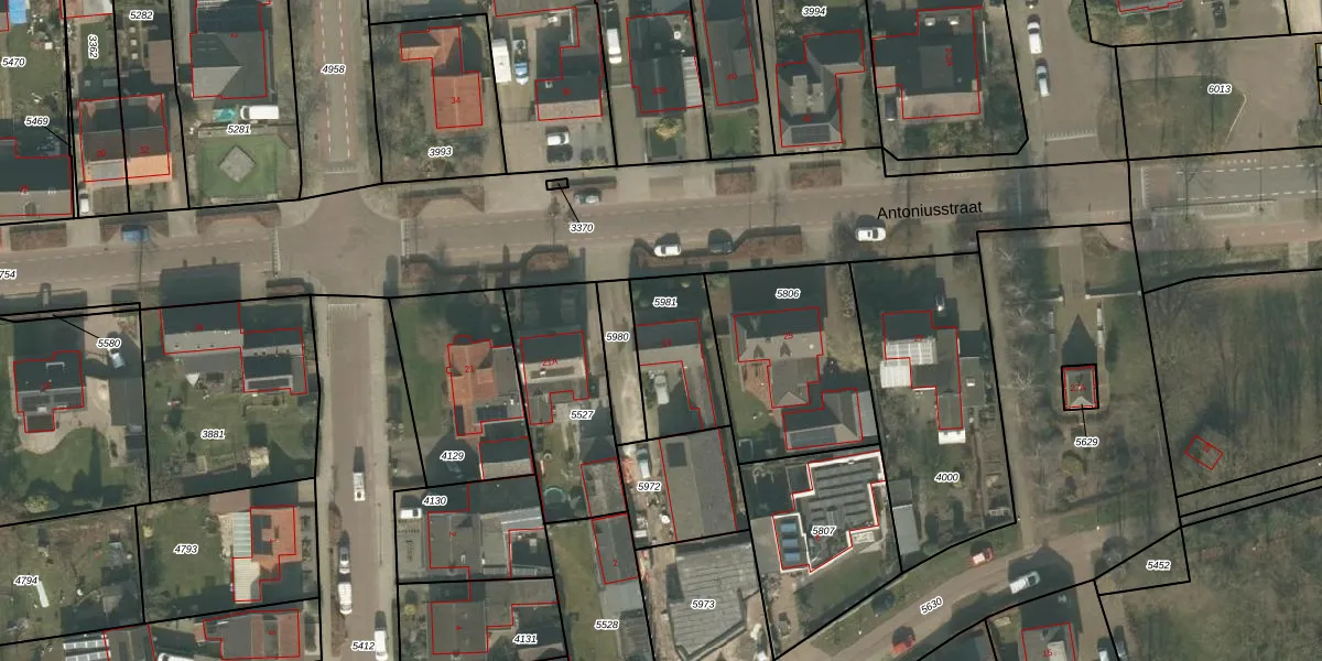 Antoniusstraat 23 is gelegen op kadastraal perceel UDN00F5981. Deze kadastrale aanduiding is uniek en wordt gebruikt door het Kadaster om eigendomsrechten en andere zakelijke rechten vast te leggen. Het perceel maakt onderdeel uit van de kadastrale gemeente Uden.