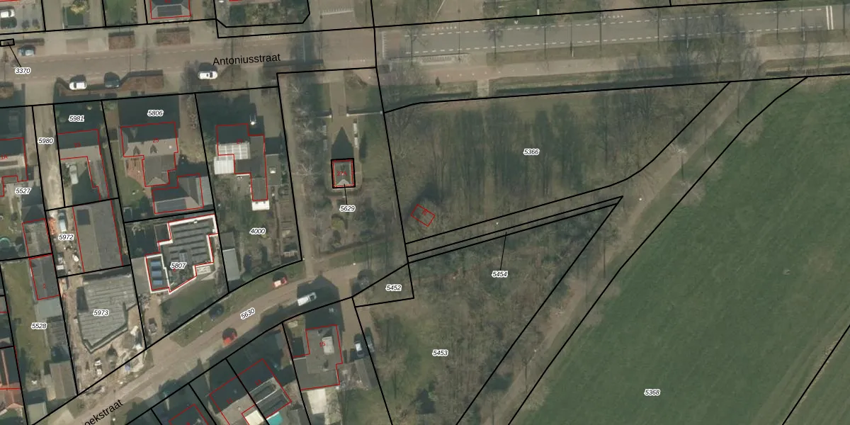 Antoniusstraat 29 is gelegen op kadastraal perceel UDN00F5366. Deze kadastrale aanduiding is uniek en wordt gebruikt door het Kadaster om eigendomsrechten en andere zakelijke rechten vast te leggen. Het perceel maakt onderdeel uit van de kadastrale gemeente Uden.