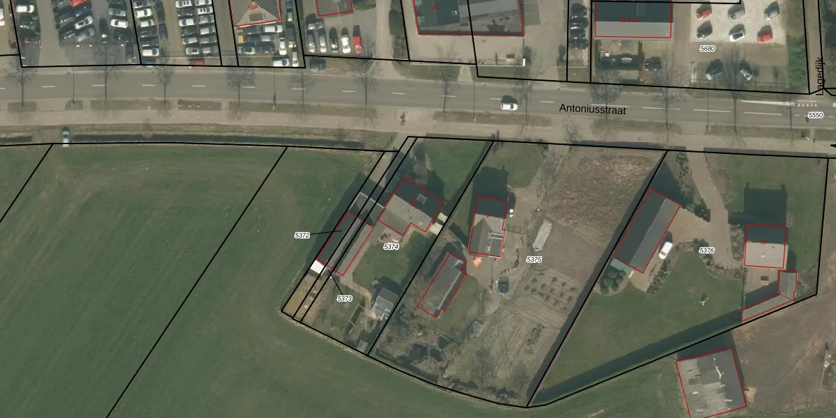 Het perceel waarop Antoniusstraat 35 staat heeft een oppervlakte van 953 m². Dit is een groot perceel. De perceeloppervlakte wordt geregistreerd door het Kadaster. Gedetailleerde informatie over de maten van dit perceel kunt u vinden in het rapport Kadastrale kaart met maatvoering van Antoniusstraat 35.