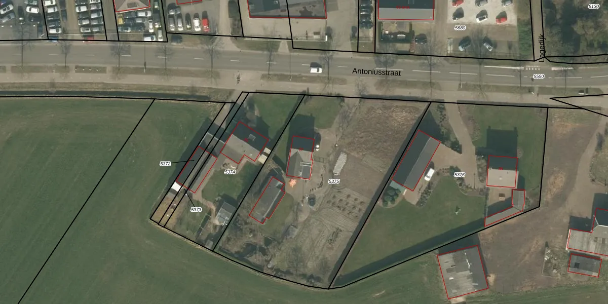 Het perceel waarop Antoniusstraat 37 staat heeft een oppervlakte van 2505 m². Dit is een zeer groot perceel. De perceeloppervlakte wordt geregistreerd door het Kadaster. Gedetailleerde informatie over de maten van dit perceel kunt u vinden in het rapport Kadastrale kaart met maatvoering van Antoniusstraat 37.