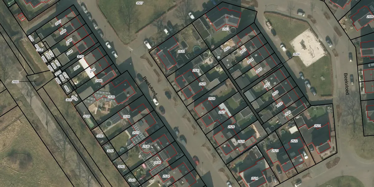 Het perceel waarop Beekvloed 24 staat heeft een oppervlakte van 253 m². Dit is een middelgroot perceel. De perceeloppervlakte wordt geregistreerd door het Kadaster. Gedetailleerde informatie over de maten van dit perceel kunt u vinden in het rapport Kadastrale kaart met maatvoering van Beekvloed 24.