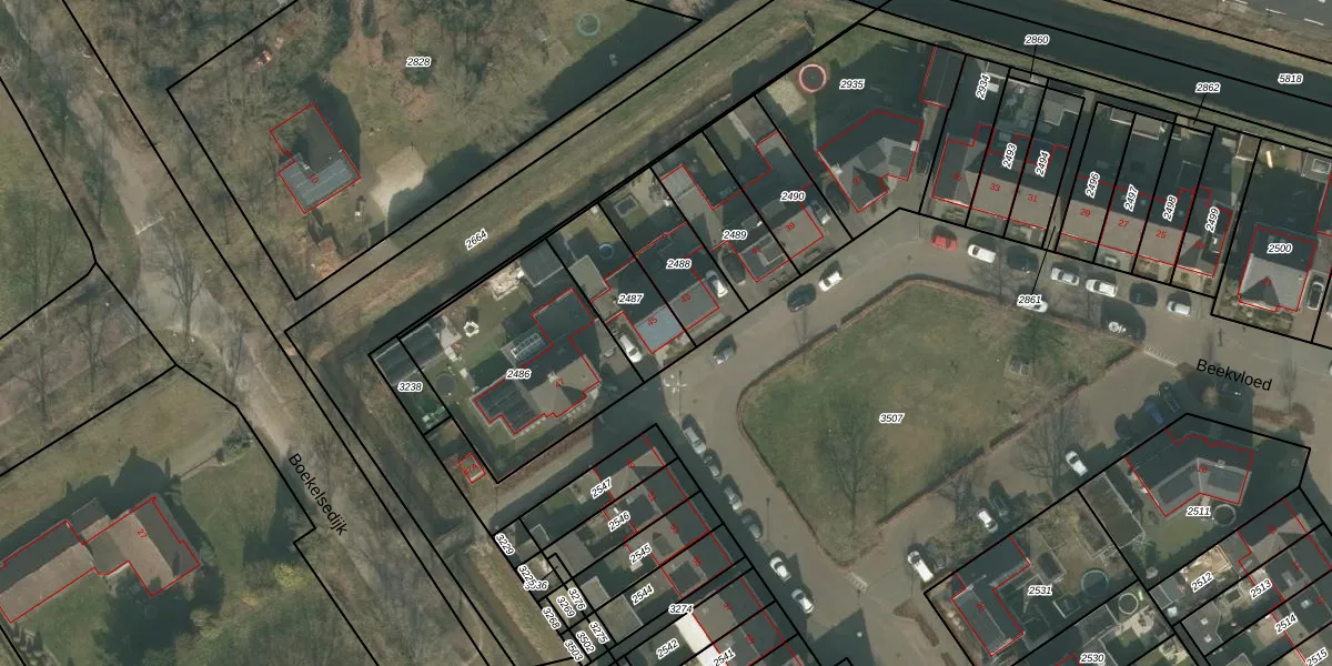 Beekvloed 45 is gelegen op kadastraal perceel UDN00P2487. Deze kadastrale aanduiding is uniek en wordt gebruikt door het Kadaster om eigendomsrechten en andere zakelijke rechten vast te leggen. Het perceel maakt onderdeel uit van de kadastrale gemeente Uden.