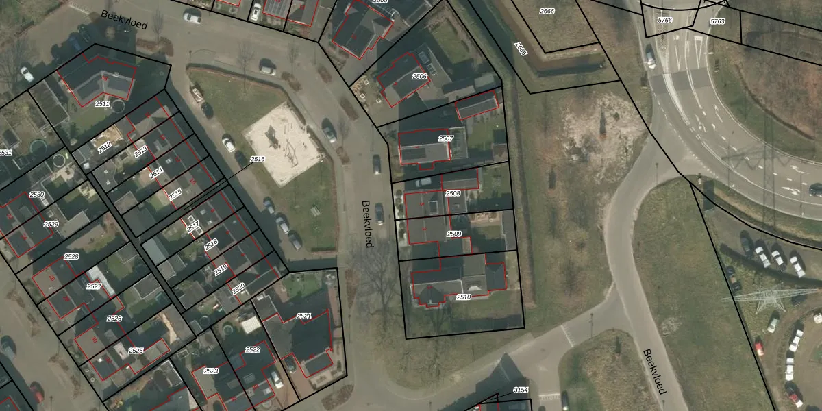 Beekvloed 5 is gelegen op kadastraal perceel UDN00P2508. Deze kadastrale aanduiding is uniek en wordt gebruikt door het Kadaster om eigendomsrechten en andere zakelijke rechten vast te leggen. Het perceel maakt onderdeel uit van de kadastrale gemeente Uden.