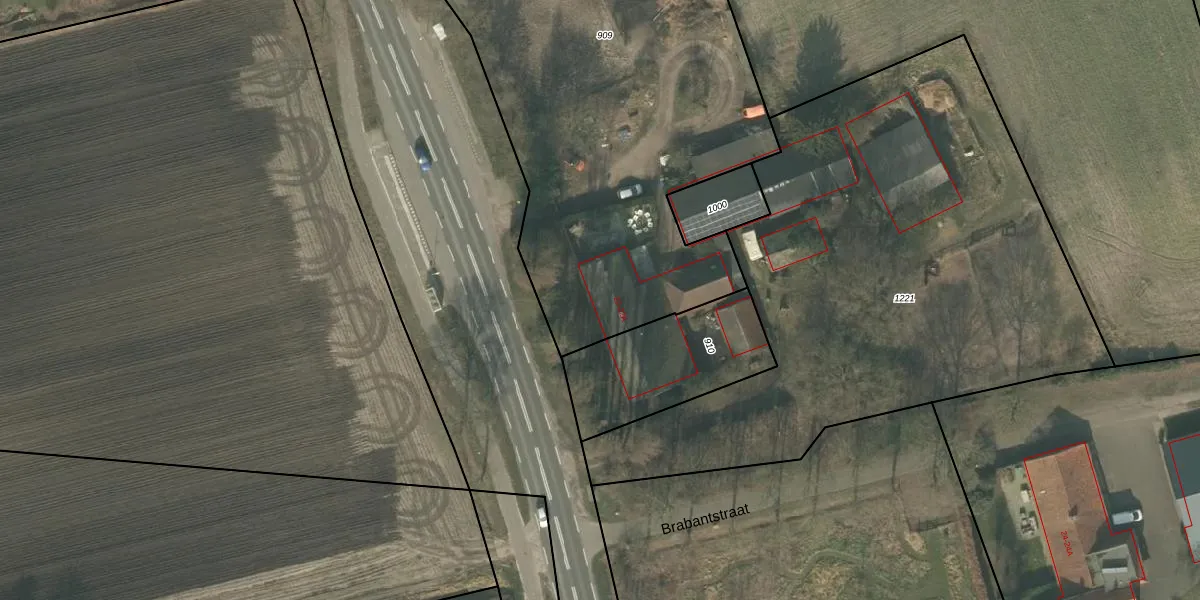 Het perceel waarop Brabantstraat 22 staat heeft een oppervlakte van 5023 m². Dit is een zeer groot perceel. De perceeloppervlakte wordt geregistreerd door het Kadaster. Gedetailleerde informatie over de maten van dit perceel kunt u vinden in het rapport Kadastrale kaart met maatvoering van Brabantstraat 22.
