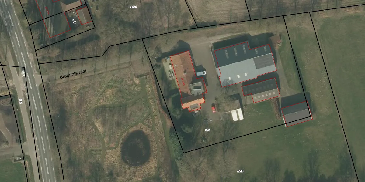 Het perceel waarop Brabantstraat 24 staat heeft een oppervlakte van 4690 m². Dit is een zeer groot perceel. De perceeloppervlakte wordt geregistreerd door het Kadaster. Gedetailleerde informatie over de maten van dit perceel kunt u vinden in het rapport Kadastrale kaart met maatvoering van Brabantstraat 24.