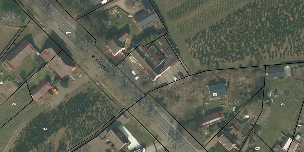 Het perceel waarop Brabantstraat 6 staat heeft een oppervlakte van 1030 m². Dit is een zeer groot perceel. De perceeloppervlakte wordt geregistreerd door het Kadaster. Gedetailleerde informatie over de maten van dit perceel kunt u vinden in het rapport Kadastrale kaart met maatvoering van Brabantstraat 6.