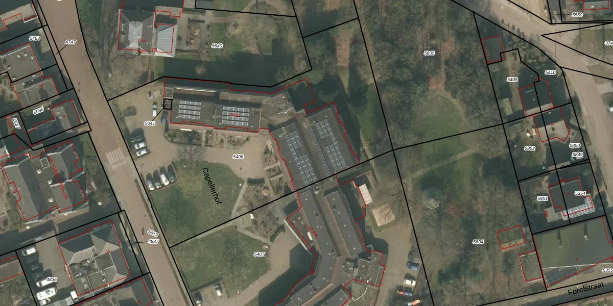 Het perceel waarop Capellerhof 34 staat heeft een oppervlakte van 3650 m². Dit is een zeer groot perceel. De perceeloppervlakte wordt geregistreerd door het Kadaster. Gedetailleerde informatie over de maten van dit perceel kunt u vinden in het rapport Kadastrale kaart met maatvoering van Capellerhof 34.