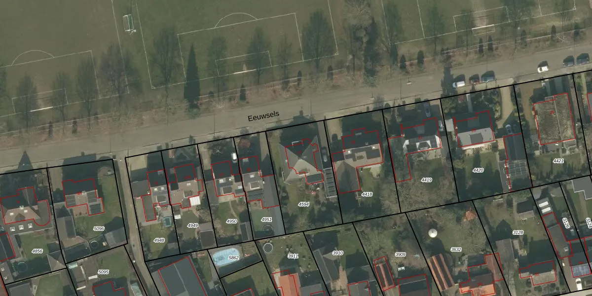 Het perceel waarop Eeuwsels 17 staat heeft een oppervlakte van 707 m². Dit is een groot perceel. De perceeloppervlakte wordt geregistreerd door het Kadaster. Gedetailleerde informatie over de maten van dit perceel kunt u vinden in het rapport Kadastrale kaart met maatvoering van Eeuwsels 17.