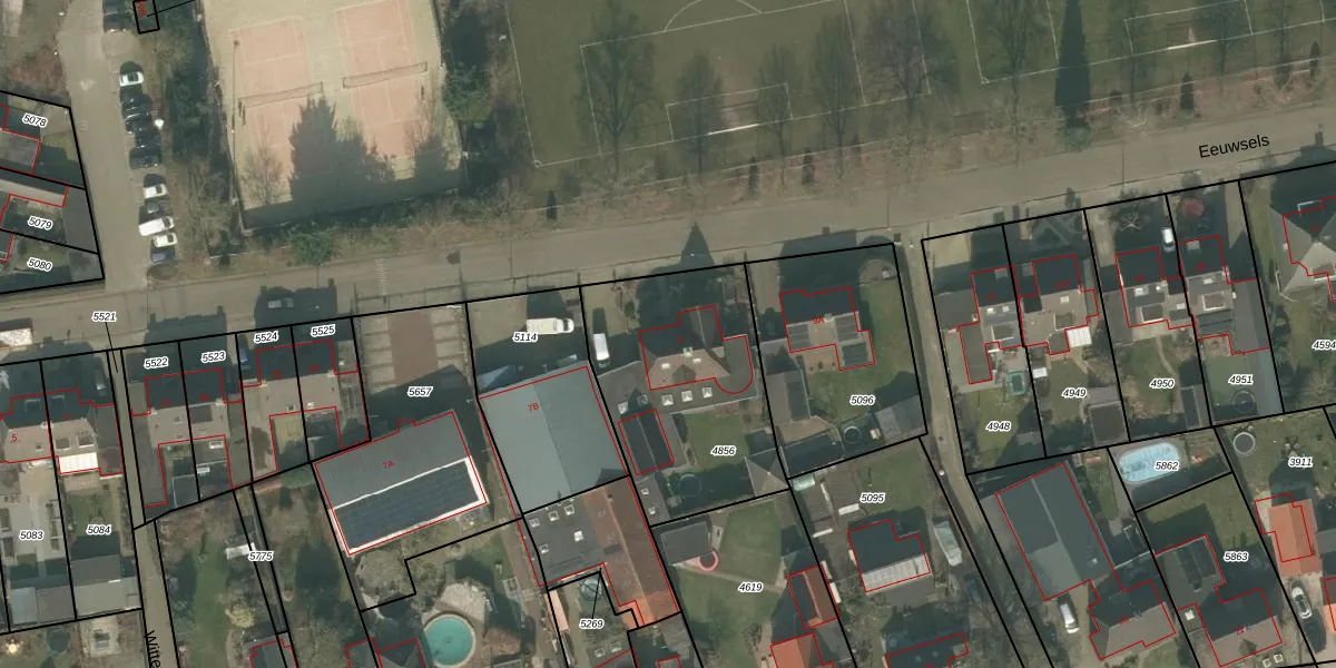 Het perceel waarop Eeuwsels 9 staat heeft een oppervlakte van 851 m². Dit is een groot perceel. De perceeloppervlakte wordt geregistreerd door het Kadaster. Gedetailleerde informatie over de maten van dit perceel kunt u vinden in het rapport Kadastrale kaart met maatvoering van Eeuwsels 9.