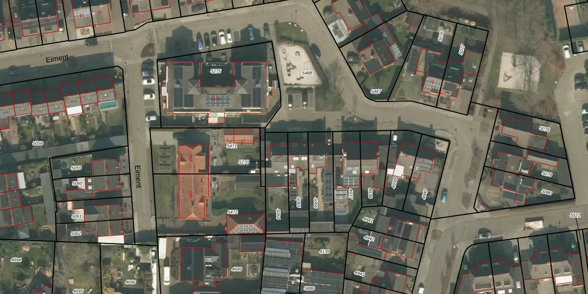 Het perceel waarop Eiment 12 staat heeft een oppervlakte van 235 m². Dit is een middelgroot perceel. De perceeloppervlakte wordt geregistreerd door het Kadaster. Gedetailleerde informatie over de maten van dit perceel kunt u vinden in het rapport Kadastrale kaart met maatvoering van Eiment 12.