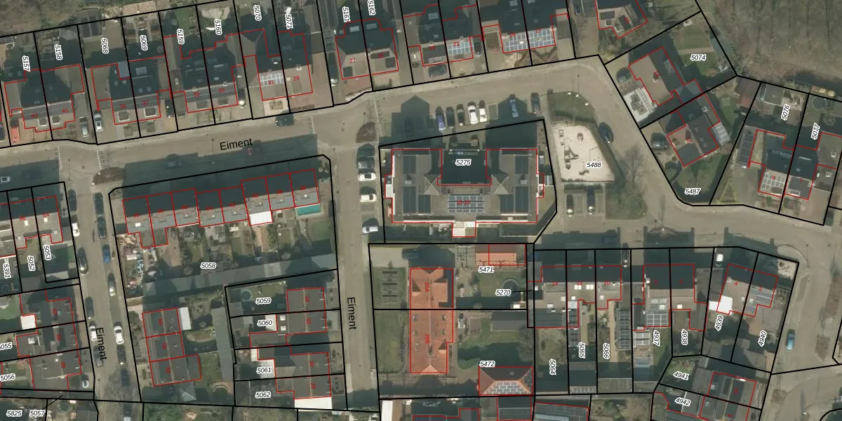 Eiment 24-A is gelegen op kadastraal perceel UDN00F5275. Deze kadastrale aanduiding is uniek en wordt gebruikt door het Kadaster om eigendomsrechten en andere zakelijke rechten vast te leggen. Het perceel maakt onderdeel uit van de kadastrale gemeente Uden.