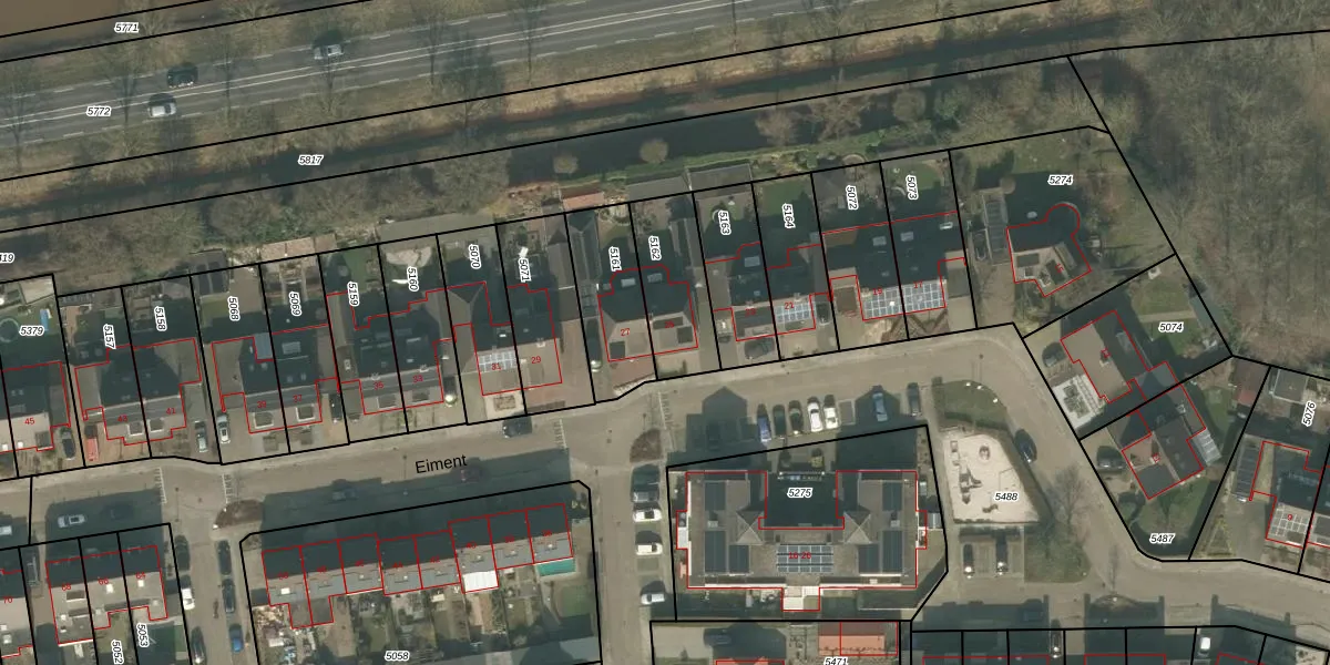 Het perceel waarop Eiment 25 staat heeft een oppervlakte van 264 m². Dit is een middelgroot perceel. De perceeloppervlakte wordt geregistreerd door het Kadaster. Gedetailleerde informatie over de maten van dit perceel kunt u vinden in het rapport Kadastrale kaart met maatvoering van Eiment 25.