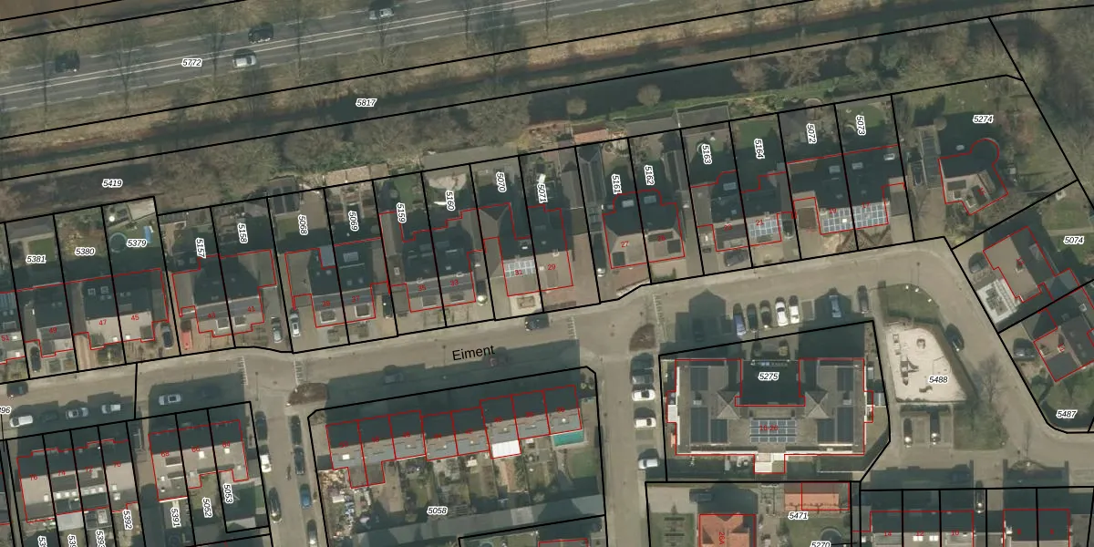 Het perceel waarop Eiment 29 staat heeft een oppervlakte van 305 m². Dit is een groot perceel. De perceeloppervlakte wordt geregistreerd door het Kadaster. Gedetailleerde informatie over de maten van dit perceel kunt u vinden in het rapport Kadastrale kaart met maatvoering van Eiment 29.