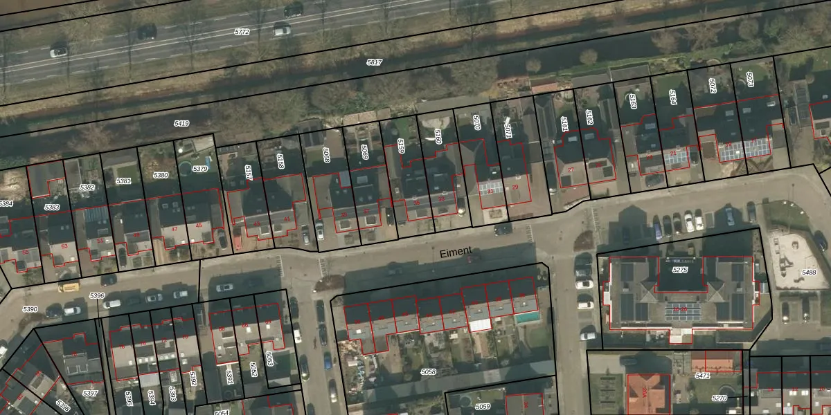 Het perceel waarop Eiment 35 staat heeft een oppervlakte van 260 m². Dit is een middelgroot perceel. De perceeloppervlakte wordt geregistreerd door het Kadaster. Gedetailleerde informatie over de maten van dit perceel kunt u vinden in het rapport Kadastrale kaart met maatvoering van Eiment 35.