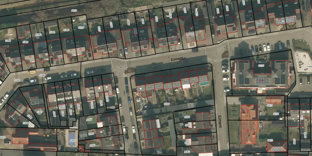 Het perceel waarop Eiment 46 staat heeft een oppervlakte van 2025 m². Dit is een zeer groot perceel. De perceeloppervlakte wordt geregistreerd door het Kadaster. Gedetailleerde informatie over de maten van dit perceel kunt u vinden in het rapport Kadastrale kaart met maatvoering van Eiment 46.