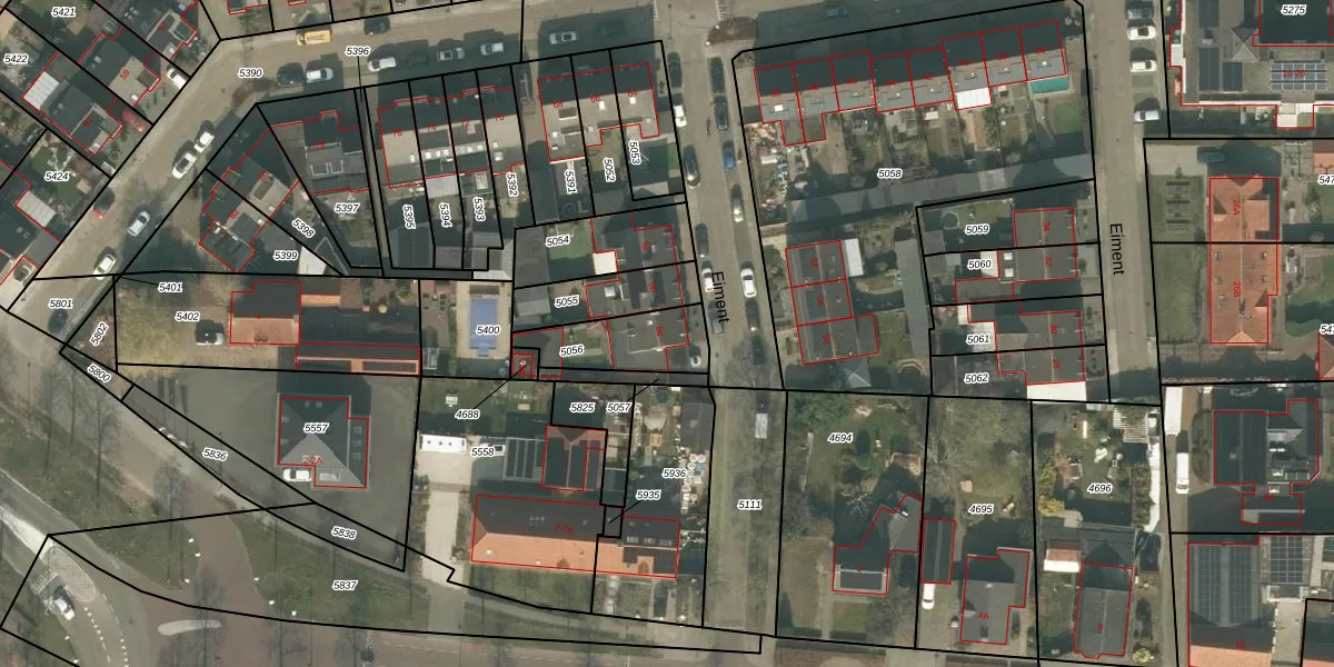 Het perceel waarop Eiment 58 staat heeft een oppervlakte van 218 m². Dit is een middelgroot perceel. De perceeloppervlakte wordt geregistreerd door het Kadaster. Gedetailleerde informatie over de maten van dit perceel kunt u vinden in het rapport Kadastrale kaart met maatvoering van Eiment 58.