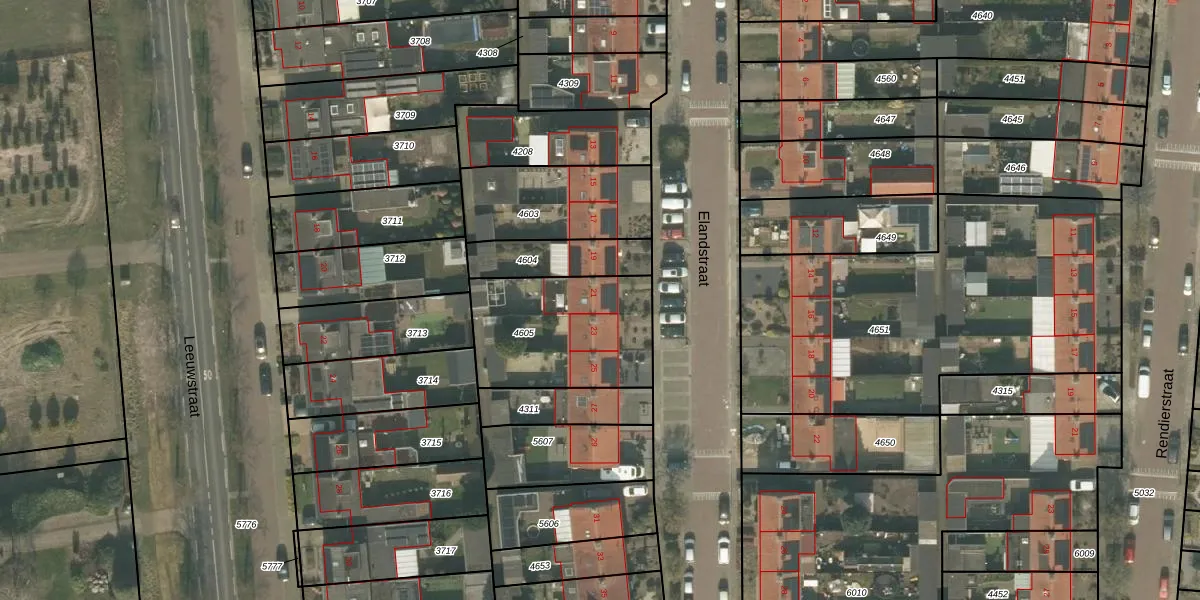 Elandstraat 21 is gelegen op kadastraal perceel UDN00F4605. Deze kadastrale aanduiding is uniek en wordt gebruikt door het Kadaster om eigendomsrechten en andere zakelijke rechten vast te leggen. Het perceel maakt onderdeel uit van de kadastrale gemeente Uden.