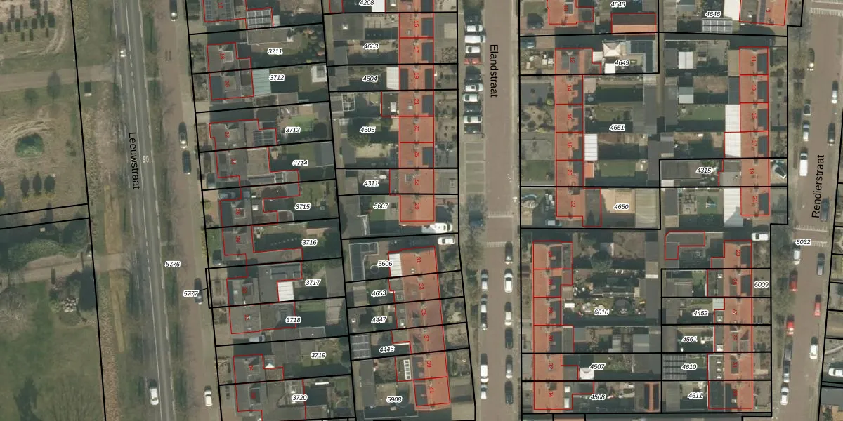 Elandstraat 29 is gelegen op kadastraal perceel UDN00F5607. Deze kadastrale aanduiding is uniek en wordt gebruikt door het Kadaster om eigendomsrechten en andere zakelijke rechten vast te leggen. Het perceel maakt onderdeel uit van de kadastrale gemeente Uden.