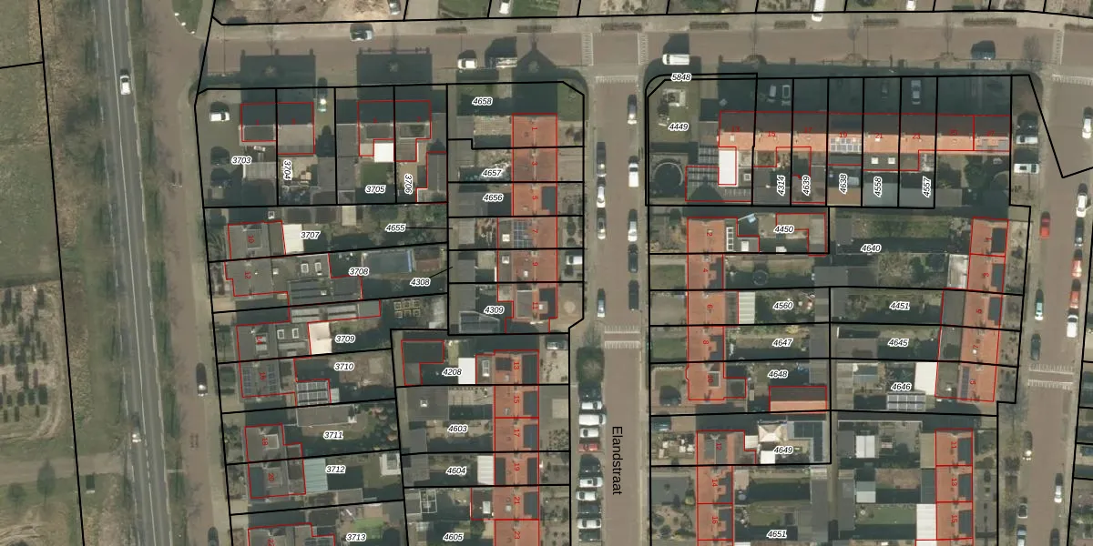Elandstraat 9 is gelegen op kadastraal perceel UDN00F4308. Deze kadastrale aanduiding is uniek en wordt gebruikt door het Kadaster om eigendomsrechten en andere zakelijke rechten vast te leggen. Het perceel maakt onderdeel uit van de kadastrale gemeente Uden.