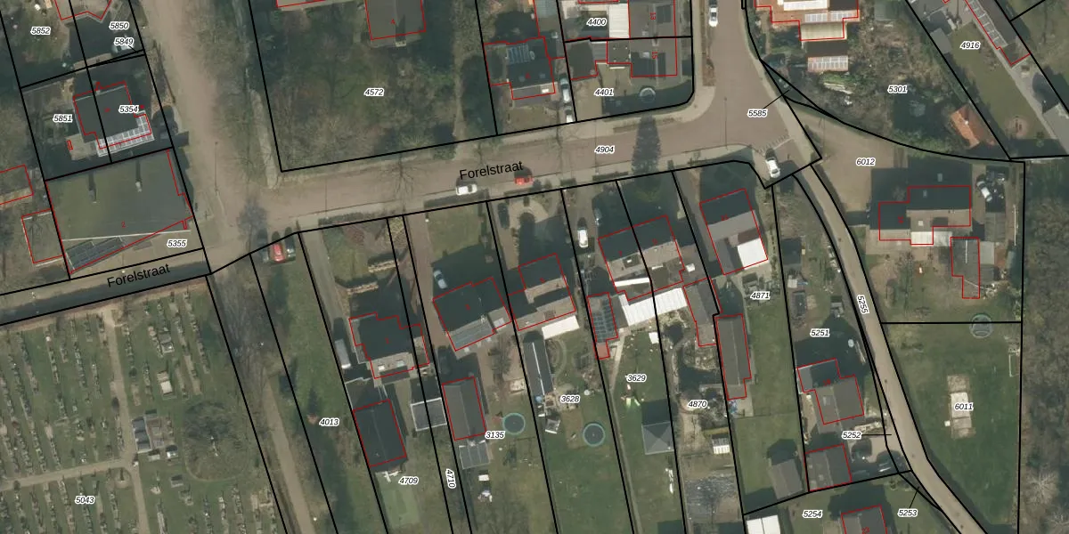 Het perceel waarop Forelstraat 5 staat heeft een oppervlakte van 1035 m². Dit is een zeer groot perceel. De perceeloppervlakte wordt geregistreerd door het Kadaster. Gedetailleerde informatie over de maten van dit perceel kunt u vinden in het rapport Kadastrale kaart met maatvoering van Forelstraat 5.