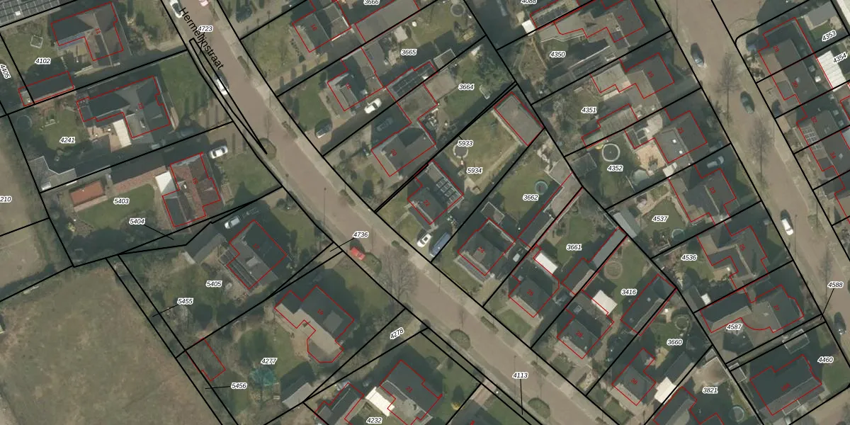 Het perceel waarop Hermelijnstraat 22 staat heeft een oppervlakte van 640 m². Dit is een groot perceel. De perceeloppervlakte wordt geregistreerd door het Kadaster. Gedetailleerde informatie over de maten van dit perceel kunt u vinden in het rapport Kadastrale kaart met maatvoering van Hermelijnstraat 22.