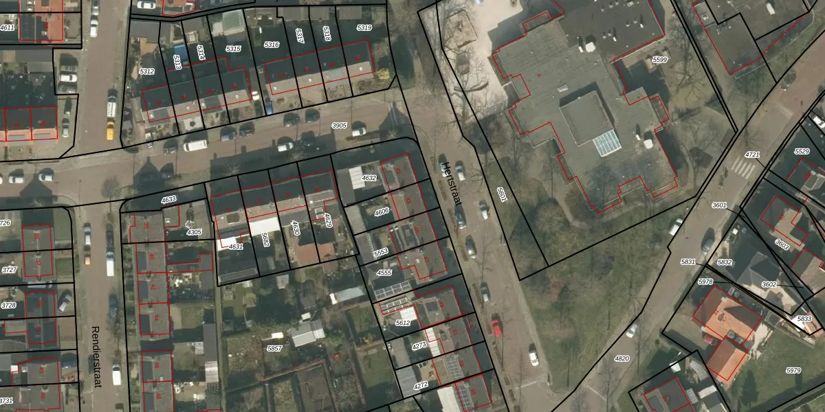 Het perceel waarop Hertstraat 43 staat heeft een oppervlakte van 165 m². Dit is een middelgroot perceel. De perceeloppervlakte wordt geregistreerd door het Kadaster. Gedetailleerde informatie over de maten van dit perceel kunt u vinden in het rapport Kadastrale kaart met maatvoering van Hertstraat 43.