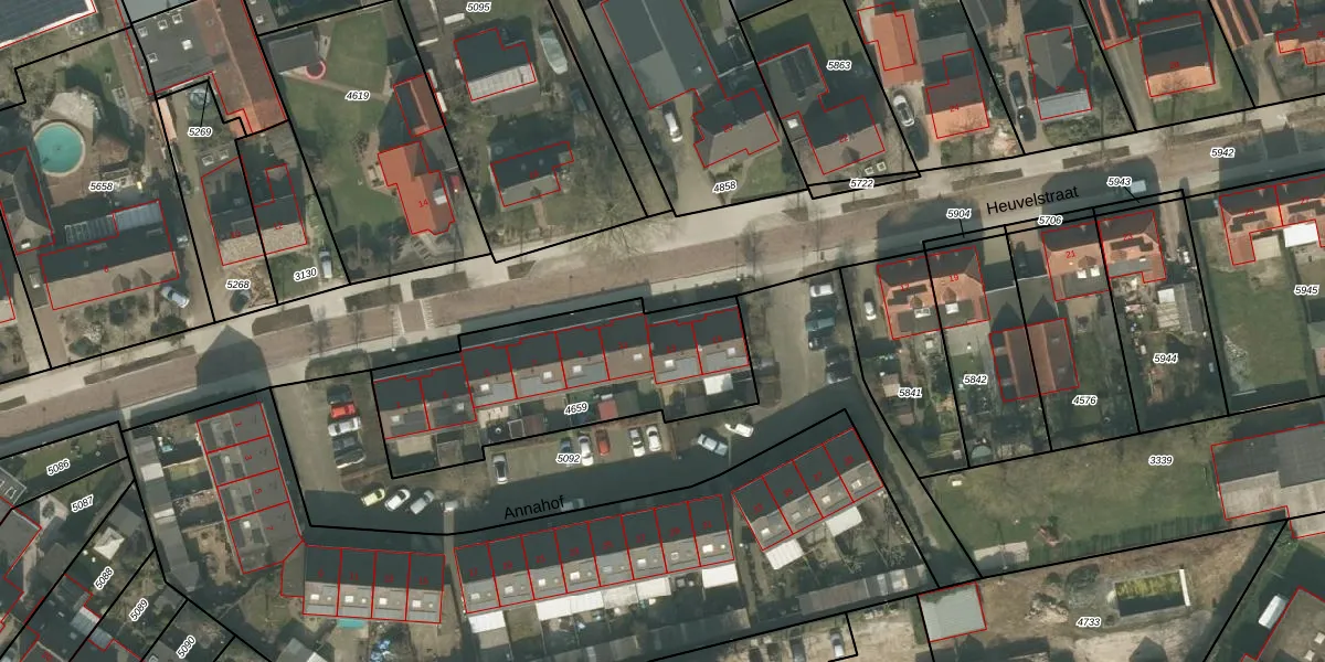 Het perceel waarop Heuvelstraat 13 staat heeft een oppervlakte van 957 m². Dit is een groot perceel. De perceeloppervlakte wordt geregistreerd door het Kadaster. Gedetailleerde informatie over de maten van dit perceel kunt u vinden in het rapport Kadastrale kaart met maatvoering van Heuvelstraat 13.
