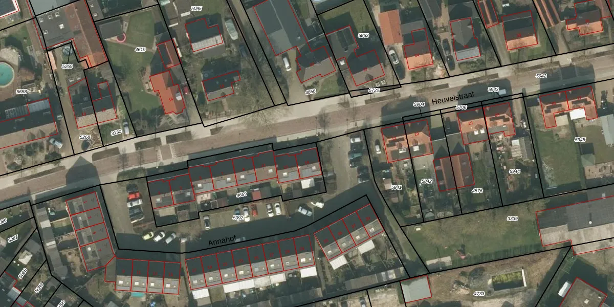 Het perceel waarop Heuvelstraat 15 staat heeft een oppervlakte van 957 m². Dit is een groot perceel. De perceeloppervlakte wordt geregistreerd door het Kadaster. Gedetailleerde informatie over de maten van dit perceel kunt u vinden in het rapport Kadastrale kaart met maatvoering van Heuvelstraat 15.