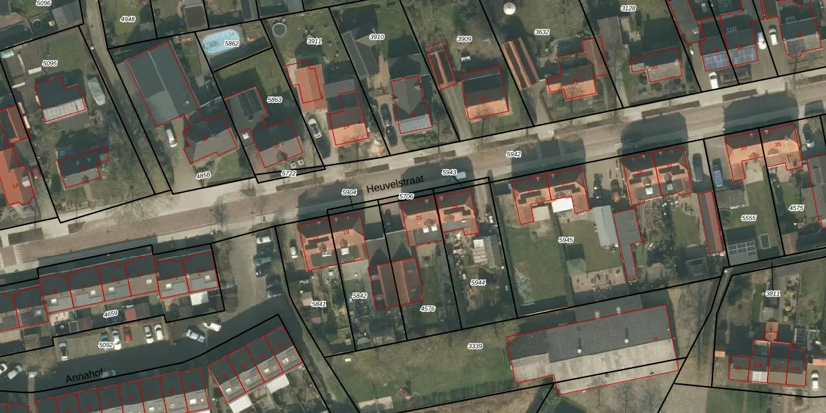 Heuvelstraat 21 is gelegen op kadastraal perceel UDN00F4576. Deze kadastrale aanduiding is uniek en wordt gebruikt door het Kadaster om eigendomsrechten en andere zakelijke rechten vast te leggen. Het perceel maakt onderdeel uit van de kadastrale gemeente Uden.