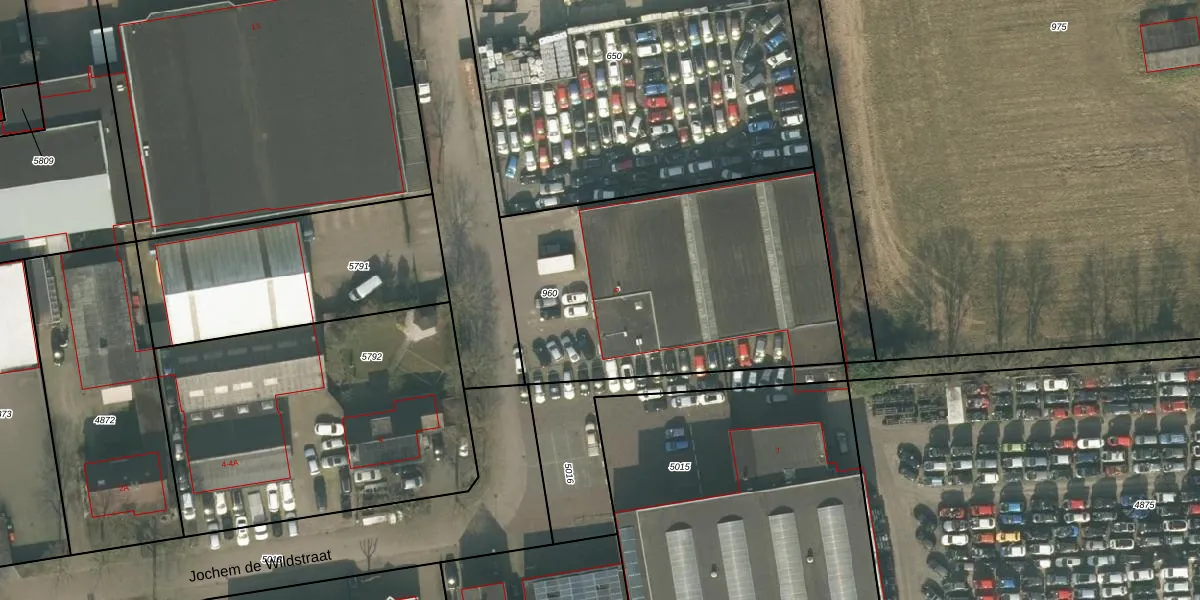 Jochem de Wildstraat 9 is gelegen op kadastraal perceel UDN00T960. Deze kadastrale aanduiding is uniek en wordt gebruikt door het Kadaster om eigendomsrechten en andere zakelijke rechten vast te leggen. Het perceel maakt onderdeel uit van de kadastrale gemeente Uden.