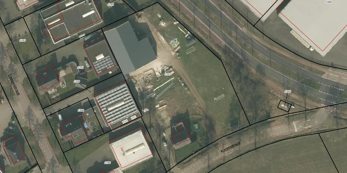 Het perceel waarop Kromstraat 2-D staat heeft een oppervlakte van 4392 m². Dit is een zeer groot perceel. De perceeloppervlakte wordt geregistreerd door het Kadaster. Gedetailleerde informatie over de maten van dit perceel kunt u vinden in het rapport Kadastrale kaart met maatvoering van Kromstraat 2-D.