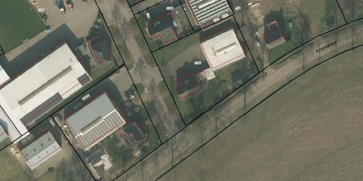 Het adres ligt op het perceel UDN00-T-1166, dat zich in de kadastrale gemeente Uden bevindt. De gemiddelde perceelgrootte in Uden is 3255,8 m². Dit perceel is kleiner: de perceeloppervlakte bedraagt 1975 m². Het kleinste perceel in de kadastrale gemeente is 0 m² groot. De grootste perceeloppervlakte is 1,06 km². Op het perceel zijn 2 adressen aanwezig. De laatste wijziging in het de Basisregistratie Kadaster (BRK) was op 03-06-2009.