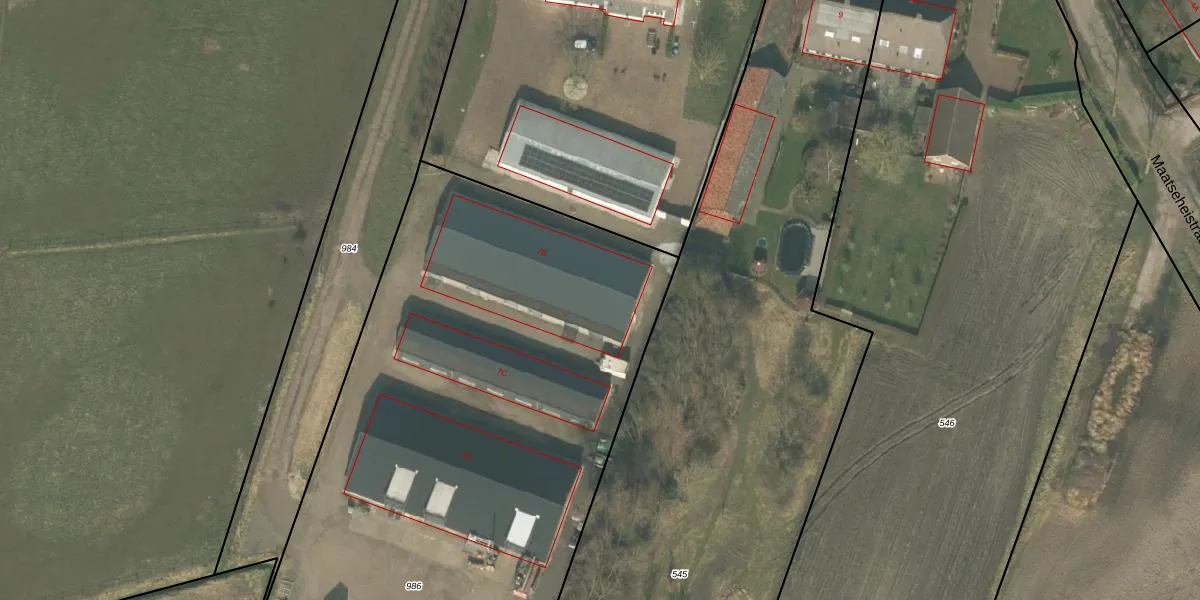 Maatseheistraat 7-B is gelegen op kadastraal perceel UDN00O986. Deze kadastrale aanduiding is uniek en wordt gebruikt door het Kadaster om eigendomsrechten en andere zakelijke rechten vast te leggen. Het perceel maakt onderdeel uit van de kadastrale gemeente Uden.