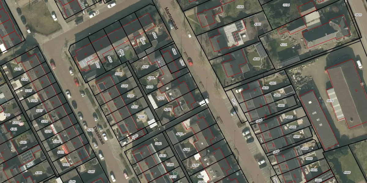Het perceel waarop Marterstraat 17 staat heeft een oppervlakte van 255 m². Dit is een middelgroot perceel. De perceeloppervlakte wordt geregistreerd door het Kadaster. Gedetailleerde informatie over de maten van dit perceel kunt u vinden in het rapport Kadastrale kaart met maatvoering van Marterstraat 17.