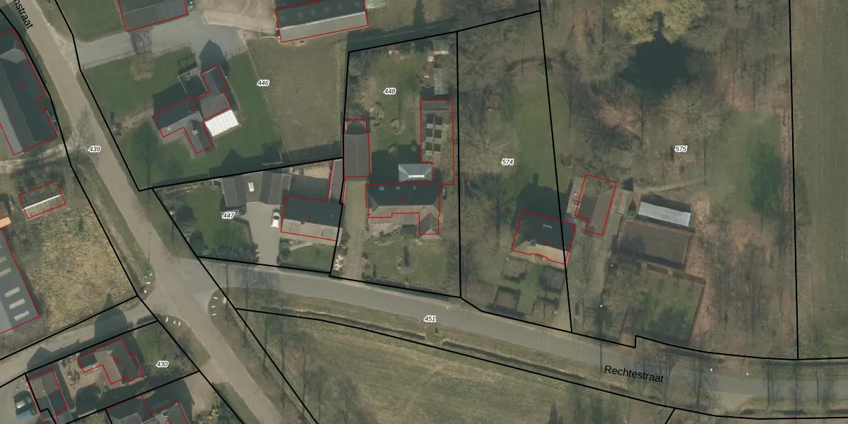 Rechtestraat 2-A is gelegen op kadastraal perceel UDN00O448. Deze kadastrale aanduiding is uniek en wordt gebruikt door het Kadaster om eigendomsrechten en andere zakelijke rechten vast te leggen. Het perceel maakt onderdeel uit van de kadastrale gemeente Uden.