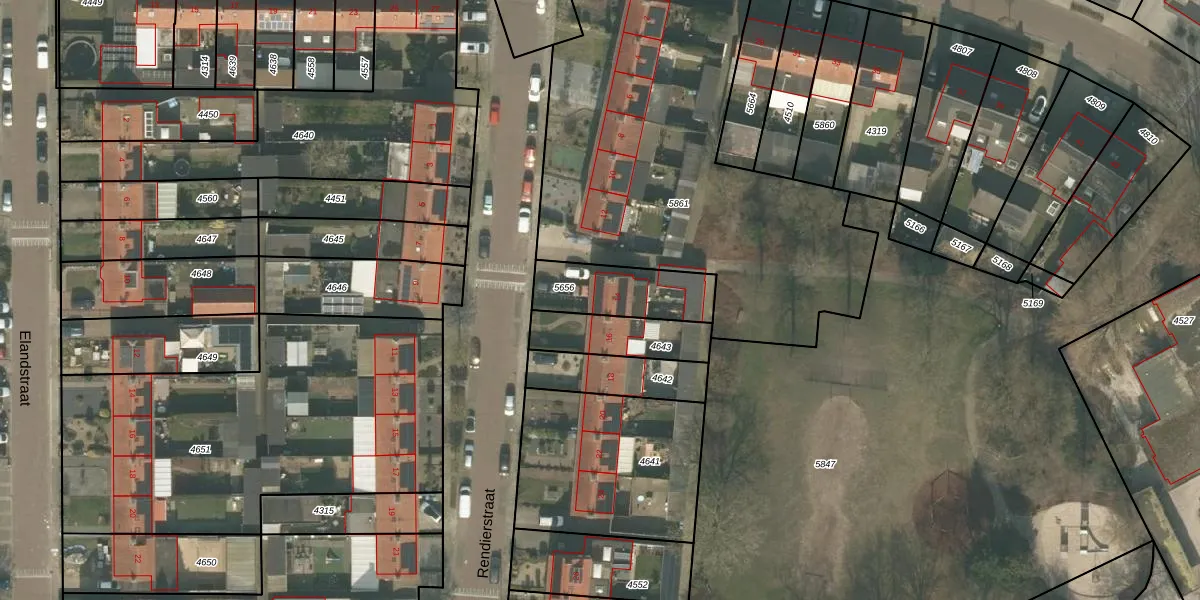 Gebruik de zoekbalk of klik op een perceel voor informatie over de adressen binnen dit perceel.