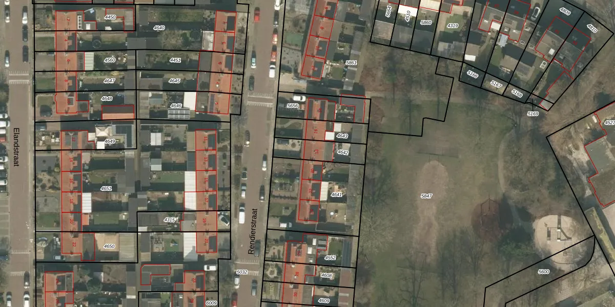 Rendierstraat 18 is gelegen op kadastraal perceel UDN00F4642. Deze kadastrale aanduiding is uniek en wordt gebruikt door het Kadaster om eigendomsrechten en andere zakelijke rechten vast te leggen. Het perceel maakt onderdeel uit van de kadastrale gemeente Uden.