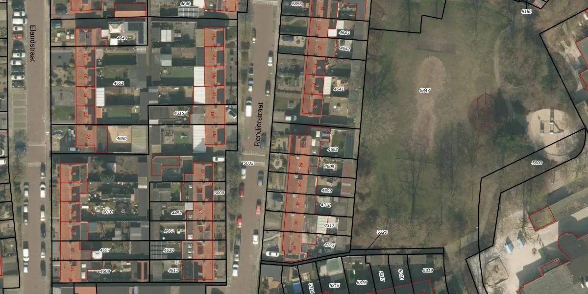 Rendierstraat 26 is gelegen op kadastraal perceel UDN00F4552. Deze kadastrale aanduiding is uniek en wordt gebruikt door het Kadaster om eigendomsrechten en andere zakelijke rechten vast te leggen. Het perceel maakt onderdeel uit van de kadastrale gemeente Uden.