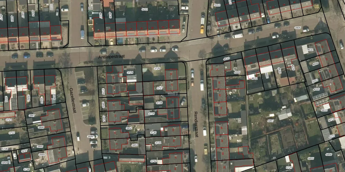 Gebruik de zoekbalk of klik op een perceel voor informatie over de adressen binnen dit perceel.
