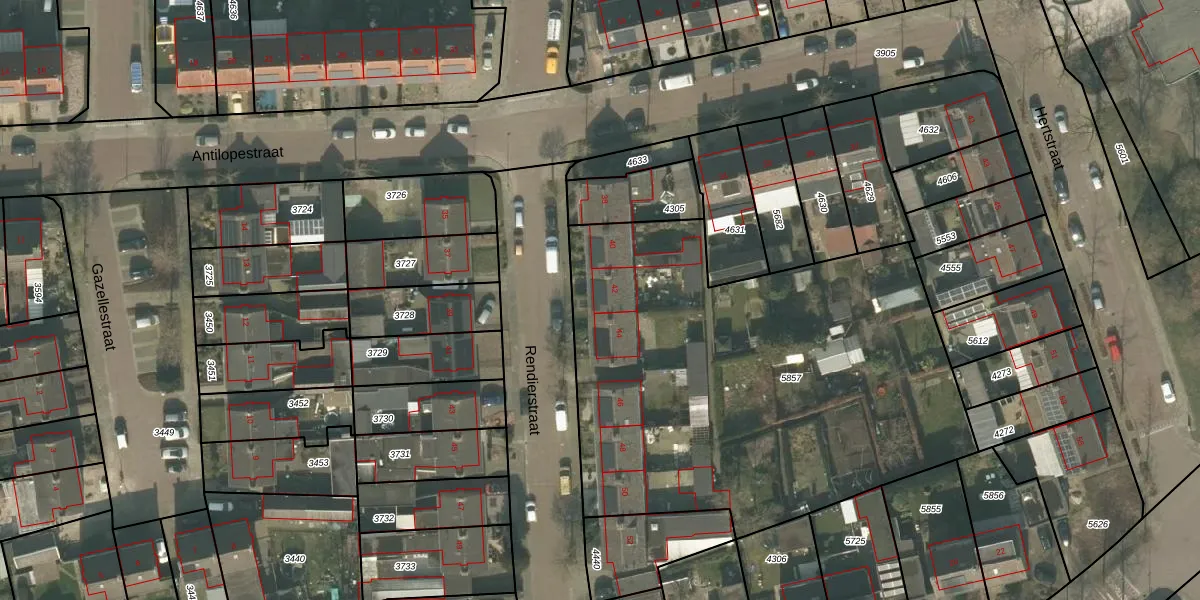 Het perceel waarop Rendierstraat 42 staat heeft een oppervlakte van 2648 m². Dit is een zeer groot perceel. De perceeloppervlakte wordt geregistreerd door het Kadaster. Gedetailleerde informatie over de maten van dit perceel kunt u vinden in het rapport Kadastrale kaart met maatvoering van Rendierstraat 42.