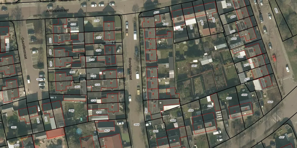 Het perceel waarop Rendierstraat 46 staat heeft een oppervlakte van 2648 m². Dit is een zeer groot perceel. De perceeloppervlakte wordt geregistreerd door het Kadaster. Gedetailleerde informatie over de maten van dit perceel kunt u vinden in het rapport Kadastrale kaart met maatvoering van Rendierstraat 46.