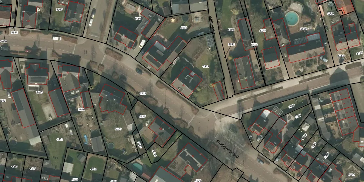 Rudigerstraat 16 is gelegen op kadastraal perceel UDN00F5583. Deze kadastrale aanduiding is uniek en wordt gebruikt door het Kadaster om eigendomsrechten en andere zakelijke rechten vast te leggen. Het perceel maakt onderdeel uit van de kadastrale gemeente Uden.