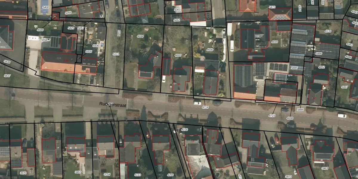 Rudigerstraat 4-A is gelegen op kadastraal perceel UDN00F4695. Deze kadastrale aanduiding is uniek en wordt gebruikt door het Kadaster om eigendomsrechten en andere zakelijke rechten vast te leggen. Het perceel maakt onderdeel uit van de kadastrale gemeente Uden.