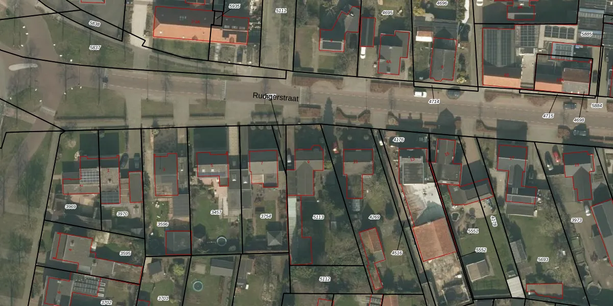 Rudigerstraat 9 is gelegen op kadastraal perceel UDN00F5113. Deze kadastrale aanduiding is uniek en wordt gebruikt door het Kadaster om eigendomsrechten en andere zakelijke rechten vast te leggen. Het perceel maakt onderdeel uit van de kadastrale gemeente Uden.