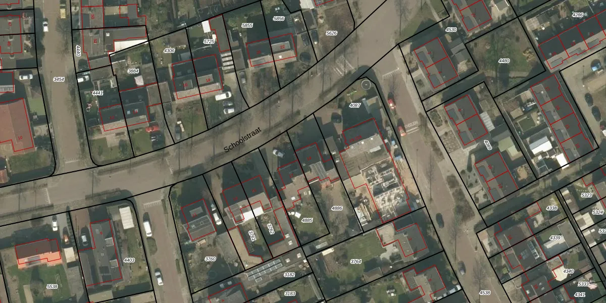 Het perceel waarop Schoolstraat 19 staat heeft een oppervlakte van 475 m². Dit is een groot perceel. De perceeloppervlakte wordt geregistreerd door het Kadaster. Gedetailleerde informatie over de maten van dit perceel kunt u vinden in het rapport Kadastrale kaart met maatvoering van Schoolstraat 19.