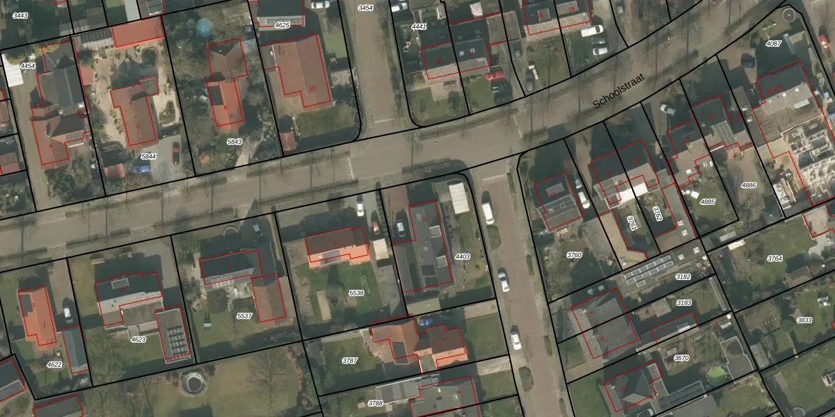 Schoolstraat 9 is gelegen op kadastraal perceel UDN00F4403. Deze kadastrale aanduiding is uniek en wordt gebruikt door het Kadaster om eigendomsrechten en andere zakelijke rechten vast te leggen. Het perceel maakt onderdeel uit van de kadastrale gemeente Uden.