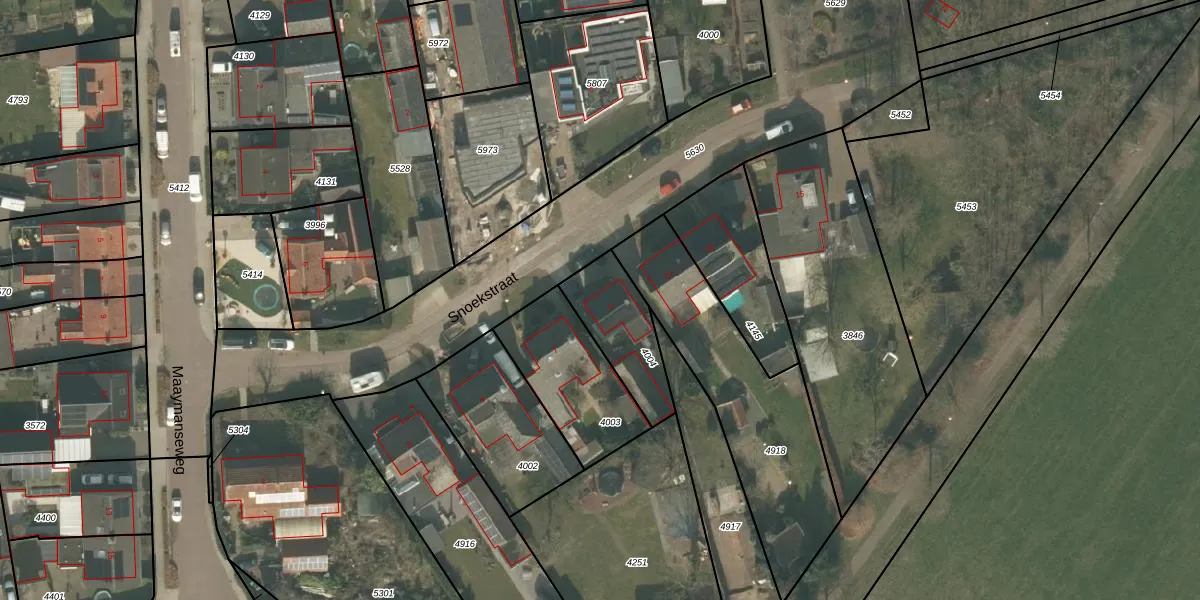 Snoekstraat 9 is gelegen op kadastraal perceel UDN00F4004. Deze kadastrale aanduiding is uniek en wordt gebruikt door het Kadaster om eigendomsrechten en andere zakelijke rechten vast te leggen. Het perceel maakt onderdeel uit van de kadastrale gemeente Uden.
