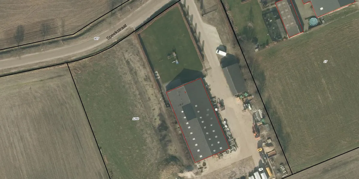 Het perceel waarop Speekstraat 3 staat heeft een oppervlakte van 1,0 ha. Dit is een zeer groot perceel. De perceeloppervlakte wordt geregistreerd door het Kadaster. Gedetailleerde informatie over de maten van dit perceel kunt u vinden in het rapport Kadastrale kaart met maatvoering van Speekstraat 3.