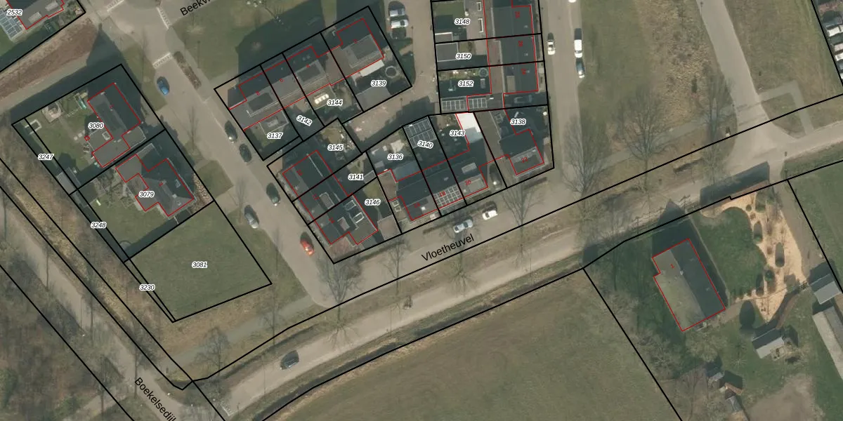 Vloetheuvel 16 is gelegen op kadastraal perceel UDN00P3136. Deze kadastrale aanduiding is uniek en wordt gebruikt door het Kadaster om eigendomsrechten en andere zakelijke rechten vast te leggen. Het perceel maakt onderdeel uit van de kadastrale gemeente Uden.