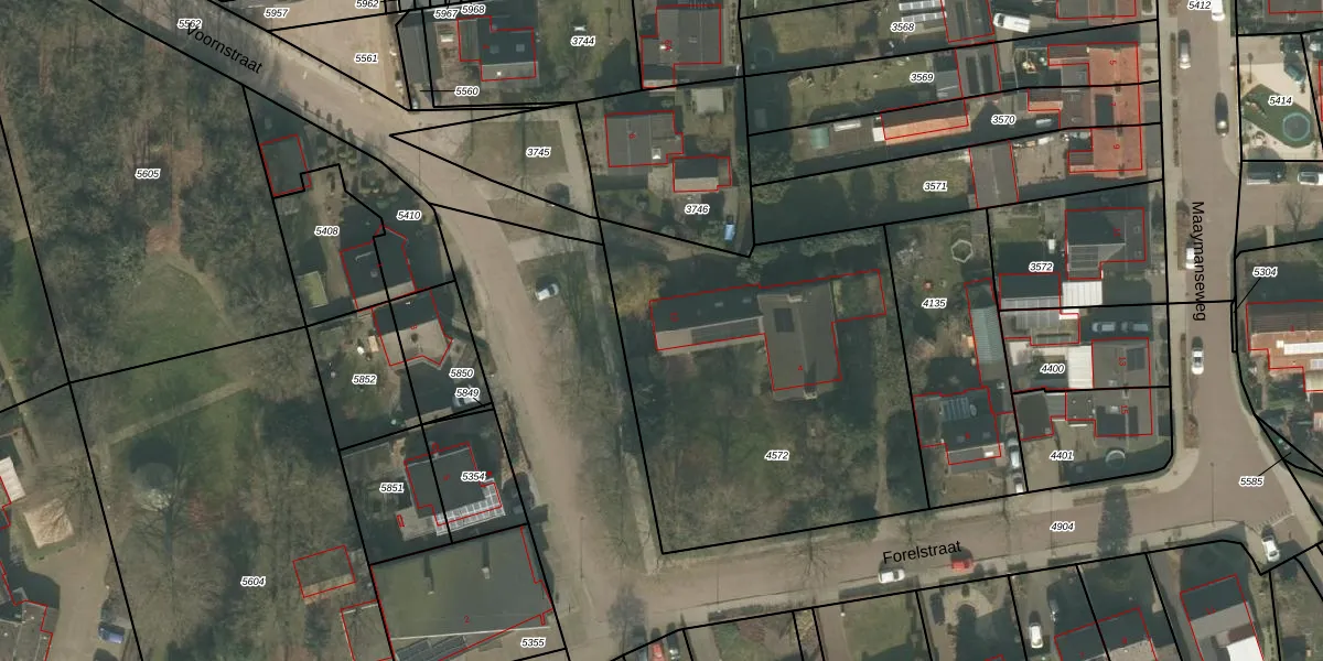 Het perceel waarop het adres ligt is UDN00-F-4572. De afkorting 'UDN00' staat voor kadastrale gemeente Uden. De gemiddelde perceelgrootte in Uden is 3242,04 m². Dit perceel is kleiner: de perceeloppervlakte bedraagt 1900 m². De grootste perceeloppervlakte in de kadastrale gemeente is 1,06 km². De kleinste oppervlakte bedraagt 0 m². Op het perceel liggen in totaal 2 adressen. In de Basisregistratie Kadaster (BRK) werden de grenzen van het perceel geregistreerd op 29-05-2009.
